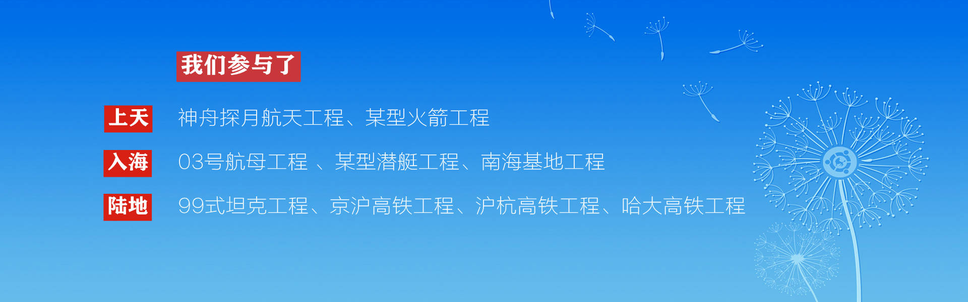 軍工品質,參與了眾多國家重點工程(京滬高鐵、哈大高鐵、西氣東輸工程等)或軍工項目(神舟登月工程、02號航母工程、2019年十一閱兵裝備等)的振動時效或應力測試等工作;